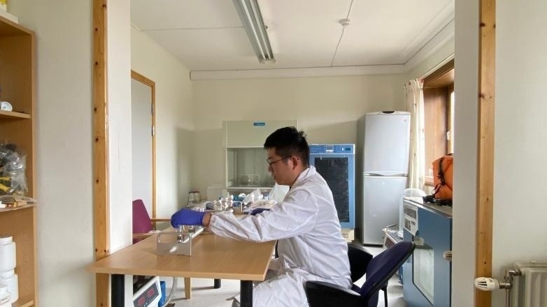 △2023年7月25日,一名中國科考隊員在挪威斯瓦爾巴群島新奧勒松的中國北極黃河站工作。