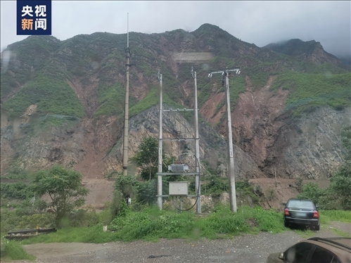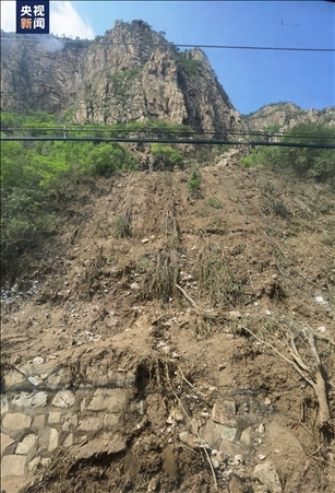 △西南側山體滑坡后,中間是石頭,兩側的土已經被沖垮,植被已經不見。