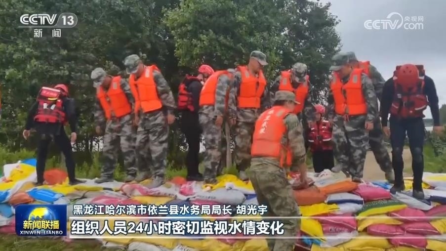 目前,黑龍江哈爾濱市、吉林舒蘭市等地部分地區(qū)受洪水災害影響較為嚴重。截至今天8時,黑龍江省牡丹江、松花江等12條河流超過警戒水位。為應對洪峰的到來,從昨晚開始,救援官兵連夜對哈爾濱雙城區(qū)多口店屯子堤進行加高。在哈爾濱依蘭縣,當?shù)亍包h員突擊隊”“志愿服務隊”,加緊開展安全隱患排查治理。