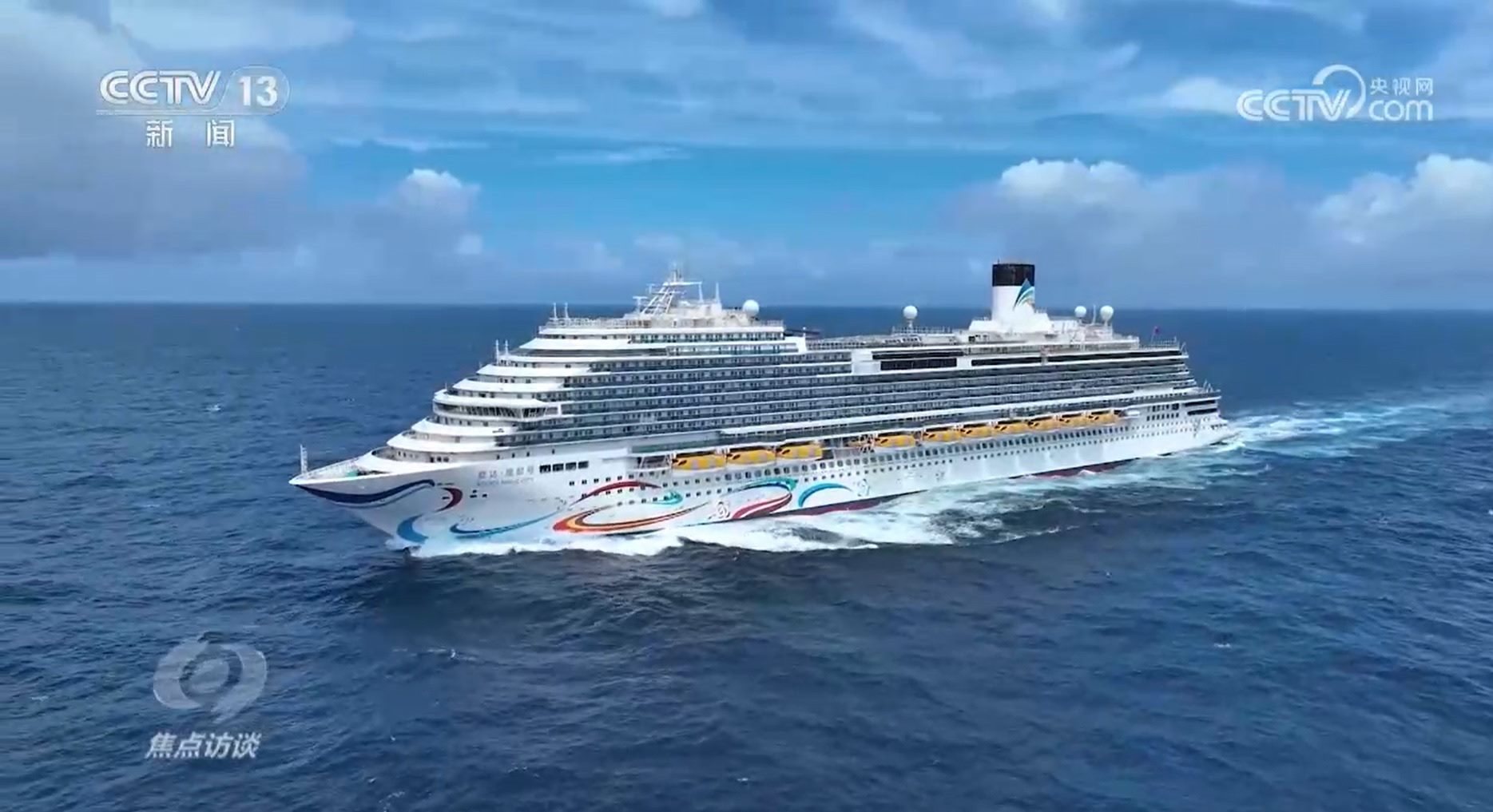 央視網(wǎng)消息(焦點訪談):一艘名叫“愛達·魔都號”的巨輪,是我國自主建造的首艘大型郵輪,它于7月24日完成了首次海上試航,??吭谏虾M飧邩虼a頭,預計今年三季度還將開展第二次試航。大型郵輪的建造是一個國家裝備建造能力和綜合科技水平的集中展現(xiàn)。今天的節(jié)目,我們先跟著這艘巨輪,去感受一下我國船舶工業(yè)最新的脈動。