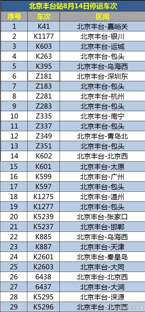 央視網(wǎng)消息:據(jù)@北京西站官方微博 消息,受水害影響,8月14日北京西站、北京豐臺(tái)站部分列車(chē)停運(yùn),已購(gòu)買(mǎi)停運(yùn)列車(chē)車(chē)票的旅客,可于30日內(nèi)辦理全額退票手續(xù)。