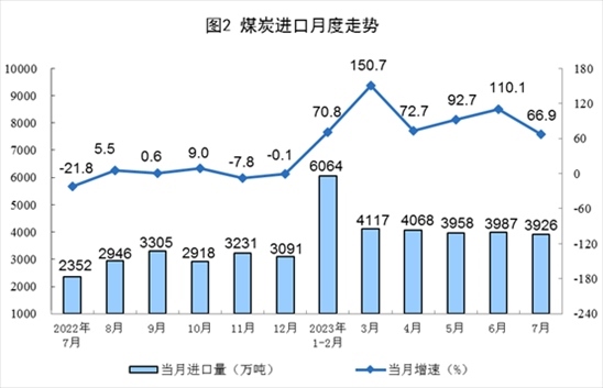 1—7月份,生產(chǎn)原煤26.7億噸,同比增長3.6%。進口煤炭2.6億噸,同比增長88.6%。
