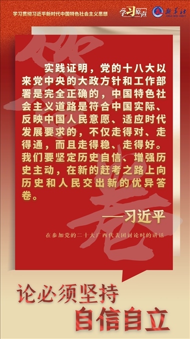 中國(guó)人民和中華民族從近代以后的深重苦難走向偉大復(fù)興的光明前景,從來(lái)就沒有教科書,更沒有現(xiàn)成答案。黨的百年奮斗成功道路是黨領(lǐng)導(dǎo)人民獨(dú)立自主探索開辟出來(lái)的,馬克思主義的中國(guó)篇章是中國(guó)共產(chǎn)黨人依靠自身力量實(shí)踐出來(lái)的,貫穿其中的一個(gè)基本點(diǎn)就是中國(guó)的問(wèn)題必須從中國(guó)基本國(guó)情出發(fā),由中國(guó)人自己來(lái)解答。我們要堅(jiān)持對(duì)馬克思主義的堅(jiān)定信仰、對(duì)中國(guó)特色社會(huì)主義的堅(jiān)定信念,堅(jiān)定道路自信、理論自信、制度自信、文化自信,以更加積極的歷史擔(dān)當(dāng)和創(chuàng)造精神為發(fā)展馬克思主義作出新的貢獻(xiàn),既不能刻舟求劍、封閉僵化,也不能照抄照搬、食洋不化。