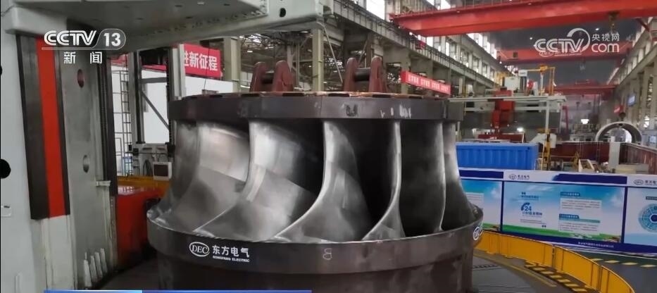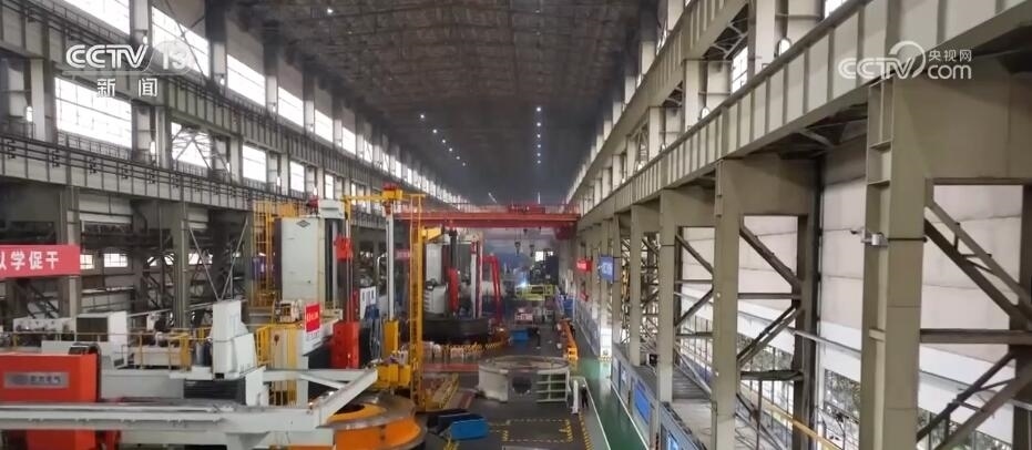 總臺記者 蔣林:我現在就是在位于四川德陽的東方電機的生產車間,這里也是目前中國最為重要的能源裝備的制造基地?,F在一天全國所發(fā)的電量里面,每4度有1度就來自于這里的設備。而且根據我們掌握的最新的生產數據,也能夠感覺到目前中國能源發(fā)展的新趨勢。截止到2023年的6月底,在過去一年當中,這里所生產的設備里有90%都是清潔能源的設備。比如,我身旁的這個大家伙,它是華龍一號發(fā)電機組的轉軸,而像這樣的大塊頭在這個廠房里面比比皆是。