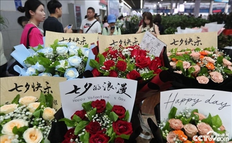 為迎接七夕,昆明斗南花市出現(xiàn)玫瑰花購(gòu)買(mǎi)熱潮。