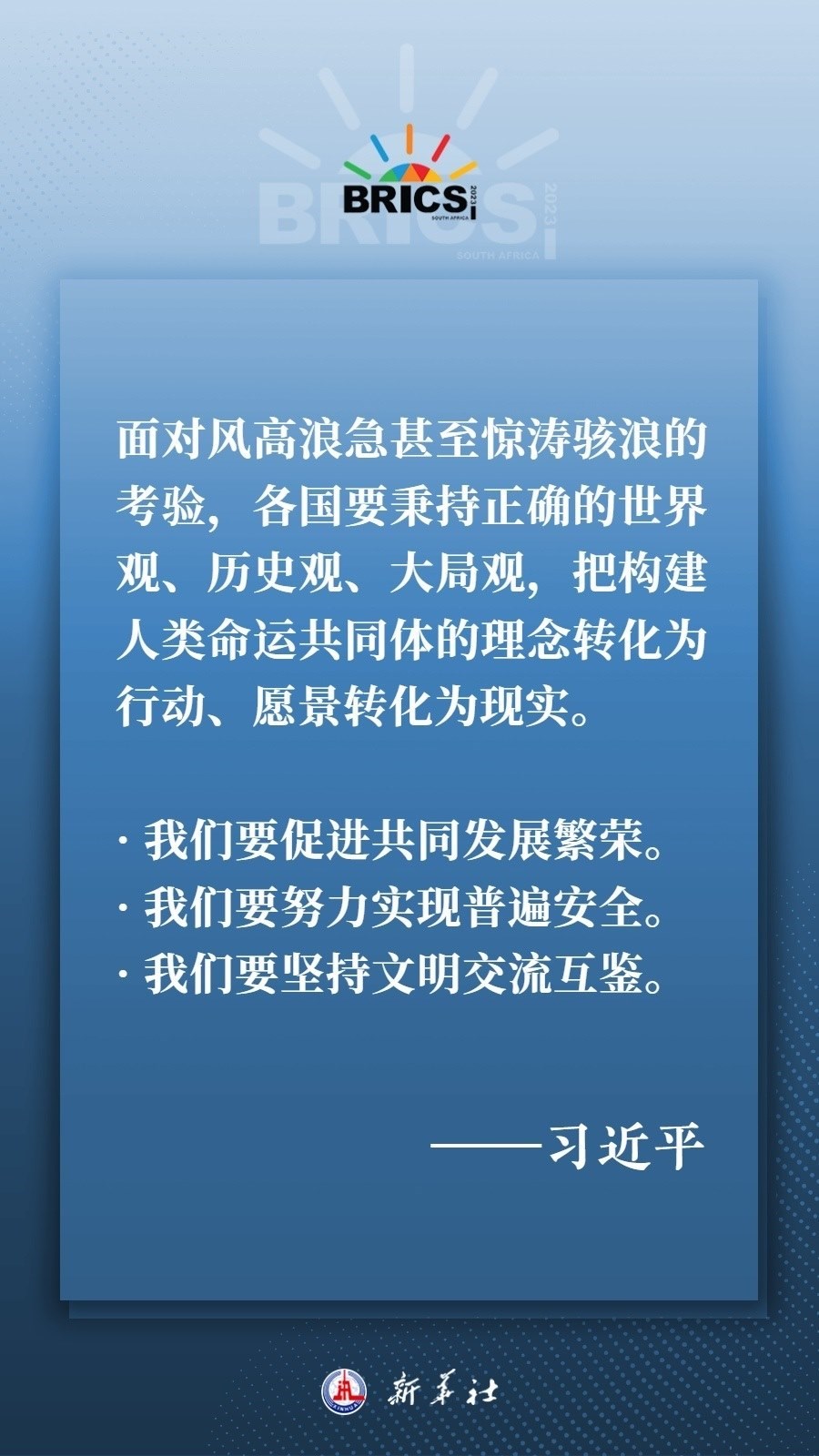 當(dāng)?shù)貢r(shí)間8月22日下午,國家主席習(xí)近平向約翰內(nèi)斯堡金磚國家工商論壇閉幕式發(fā)表致辭,為各國深化團(tuán)結(jié)合作、應(yīng)對(duì)風(fēng)險(xiǎn)挑戰(zhàn)、共建更加美好的世界指明方向——
