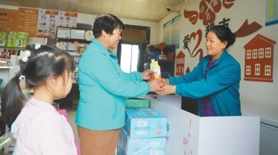“40分就可以兌換一瓶洗衣液,我這就拿給您。”超市負責人景觀轉(zhuǎn)身從貨架上取下物品,然后在兌換記錄本上做好記錄?!敖刂两衲?月中旬,已有300多名村民來兌換了4000多分的物品,包括口罩、牙刷、燒水壺等?!本坝^說,對于每項物資進出,他都會詳細登記、認真核對。
