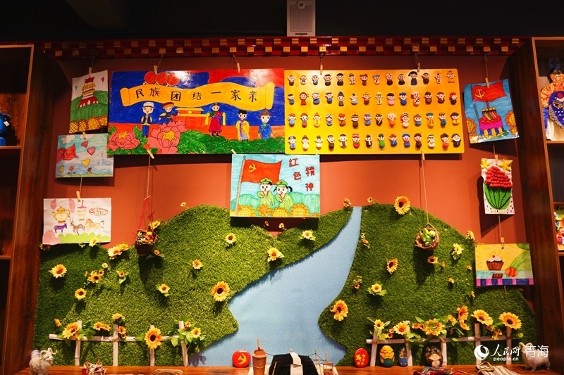 歇春園社區(qū)紅石榴之家內(nèi),社區(qū)小朋友創(chuàng)作的民族團結主題作品引人駐足。人民網(wǎng)記者 楊啟紅攝