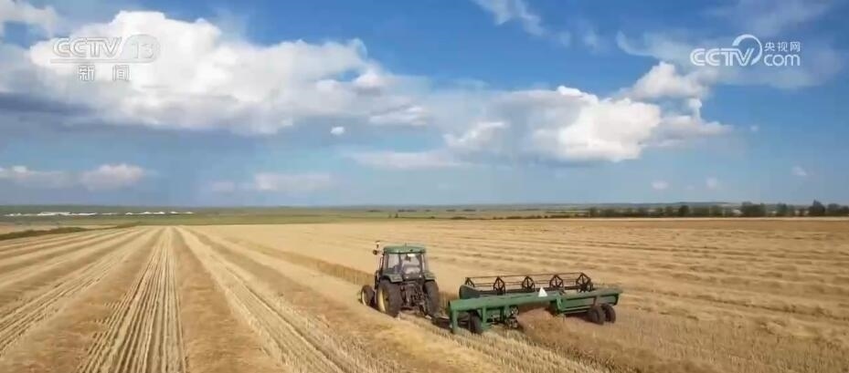 在呼倫貝爾牙克石市豐源農(nóng)場,幾臺大型收割機正在麥田里往返穿梭,一壟壟成熟的小麥被卷進機器,收割、晾曬一氣呵成。
