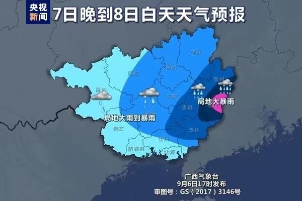 7日晚上到8日白天,賀州、梧州、貴港等市和桂林南部、來(lái)賓東部、玉林北部有大雨到暴雨、局地大暴雨,廣西其他地區(qū)有小到中雨、局地大雨到暴雨。