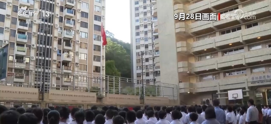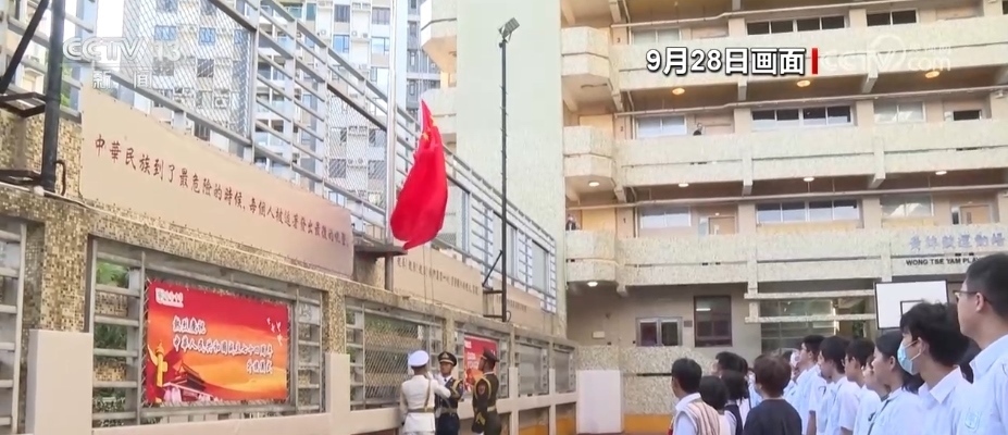 央視網(wǎng)消息:為慶祝中華人民共和國成立74周年,9月28日,香港培僑中學(xué)邀請解放軍駐香港部隊(duì)三軍儀仗隊(duì)來校為全體師生舉行升國旗儀式。培僑中學(xué)是新中國成立后首批升起五星紅旗的香港學(xué)校之一,從那時起,升國旗的儀式在培僑中學(xué)代代相傳,迄今已經(jīng)延續(xù)了74年。