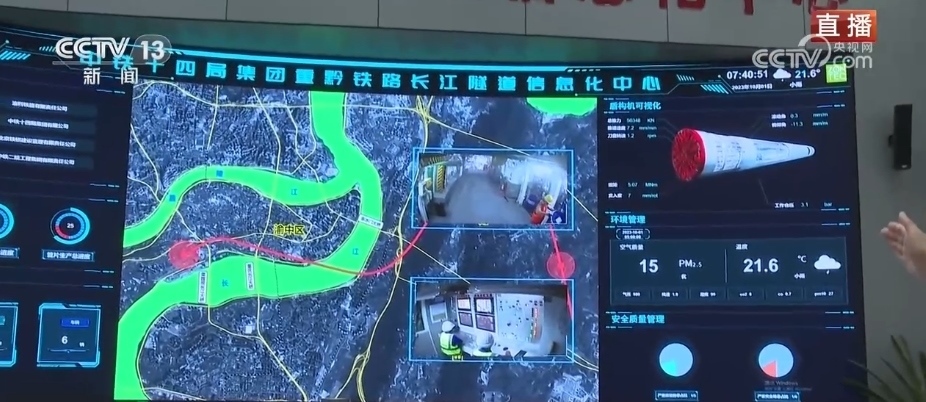 總臺記者 李洪淼:以前修建隧道需要爆破施工,工人在地下需要完成人工打眼、裝炸藥、爆破、出渣等工作,還需要進行后續(xù)的二襯等工序才可以完成隧道建設(shè)。而如今,使用盾構(gòu)機來修建隧道,不僅可以讓隧道建設(shè)的效率大大提升,還能改善工人們的工作環(huán)境,安全性也有保障。智慧化的施工監(jiān)測平臺可以對洞內(nèi)的施工一目了然。