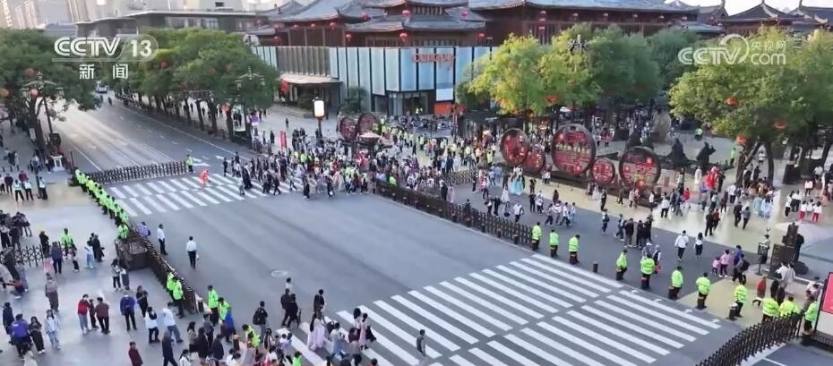 西安大唐不夜城是很多游客到西安必打卡的景點之一。今年中秋國慶假期頭兩天,大唐不夜城的日均客流量達到40萬人。聚起了人氣之后,怎樣保證數(shù)十萬游客能夠平安順暢出行,成為景區(qū)面臨的第一道難題。