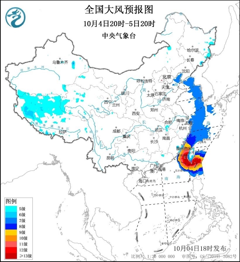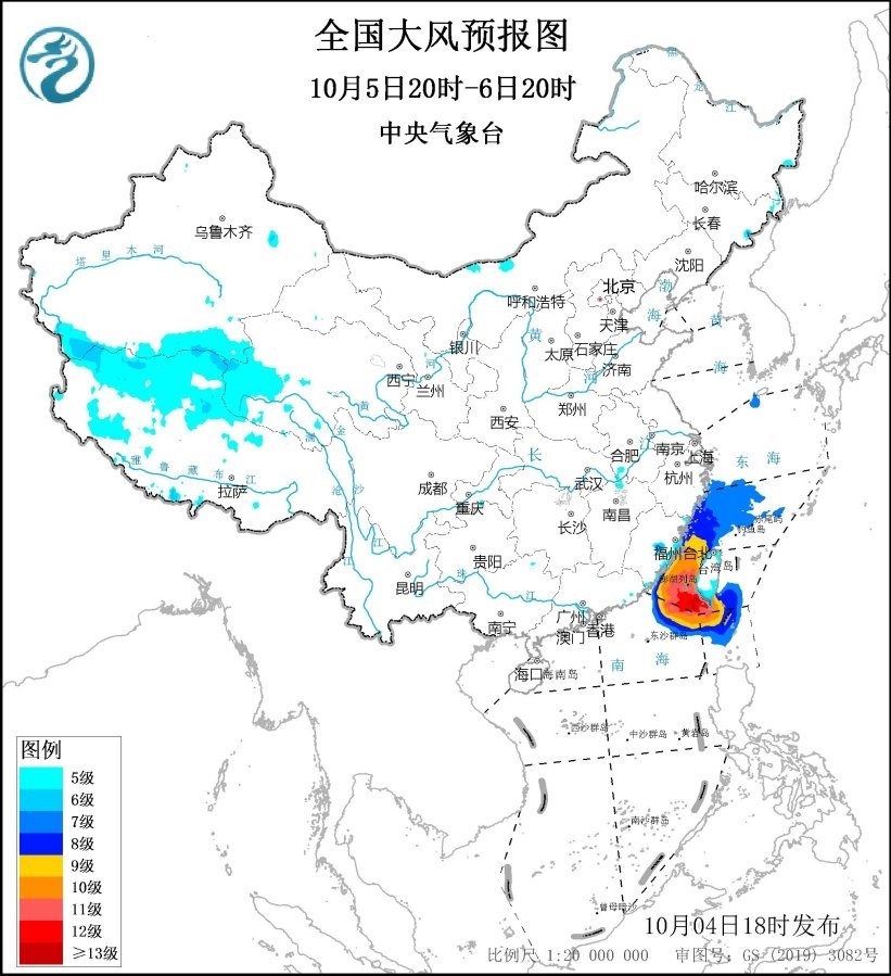 中央氣象臺(tái)10月4日18時(shí)繼續(xù)發(fā)布大風(fēng)黃色預(yù)警,預(yù)計(jì),10月4日20時(shí)至5日20時(shí),東海西南部海域、臺(tái)灣海峽、臺(tái)灣以東洋面、巴士海峽、南海東北部偏北海域?qū)⒂?~9級(jí)、陣風(fēng)10~11級(jí)的大風(fēng),其中臺(tái)灣海峽、臺(tái)灣以東洋面、巴士海峽的部分海域風(fēng)力可達(dá)10~12級(jí)、陣風(fēng)13~14級(jí),臺(tái)風(fēng)“小犬”中心經(jīng)過(guò)的附近海域風(fēng)力可達(dá)13~14級(jí)、陣風(fēng)15~16級(jí);渤海北部海域、黃海東部海域、東海西北部海域?qū)⒂?級(jí)、陣風(fēng)8級(jí)的大風(fēng);西藏西部、浙江沿海、福建沿海、臺(tái)灣島將有5~6級(jí)、陣風(fēng)7級(jí)的大風(fēng)。