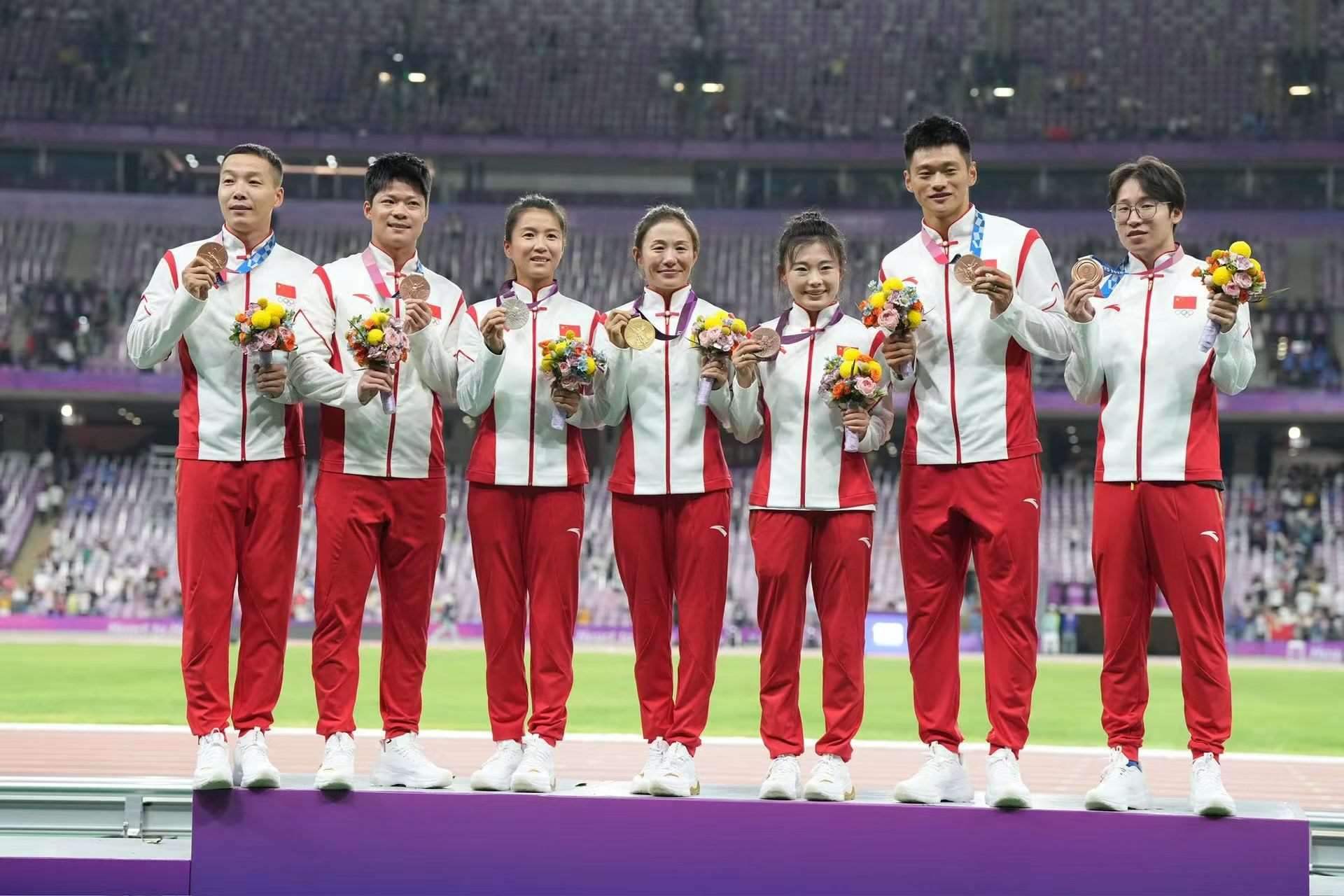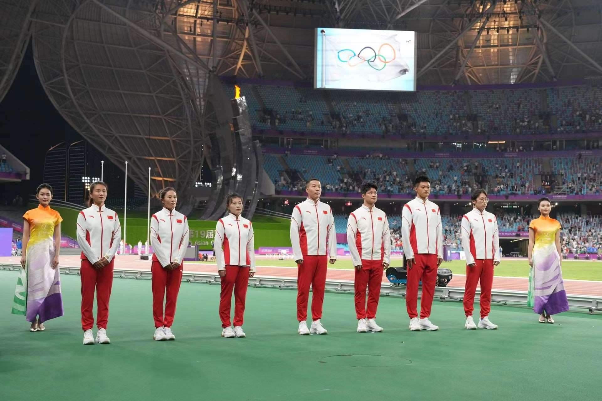 10月4日晚,在杭州亞運(yùn)會(huì)田徑比賽全部結(jié)束后,中國奧委會(huì)為蘇炳添、謝震業(yè)、吳智強(qiáng)、湯星強(qiáng)、切陽什姐、劉虹和呂秀芝補(bǔ)發(fā)了奧運(yùn)會(huì)獎(jiǎng)牌。