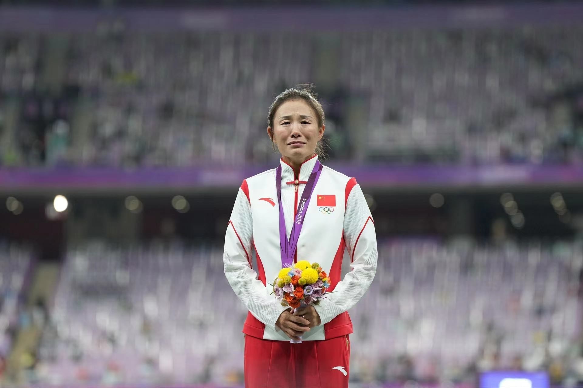 補(bǔ)發(fā)現(xiàn)場,首先頒發(fā)的是男子4×100米接力銅牌。四位中國小伙子笑著走上銅牌領(lǐng)獎(jiǎng)臺(tái),接受頒獎(jiǎng)。隨后的競走頒獎(jiǎng)儀式上,在三位得獎(jiǎng)運(yùn)動(dòng)員獲頒獎(jiǎng)牌后,《義勇軍進(jìn)行曲》奏響,三面五星紅旗冉冉升起,切陽什姐眼中涌動(dòng)著晶瑩的淚花。