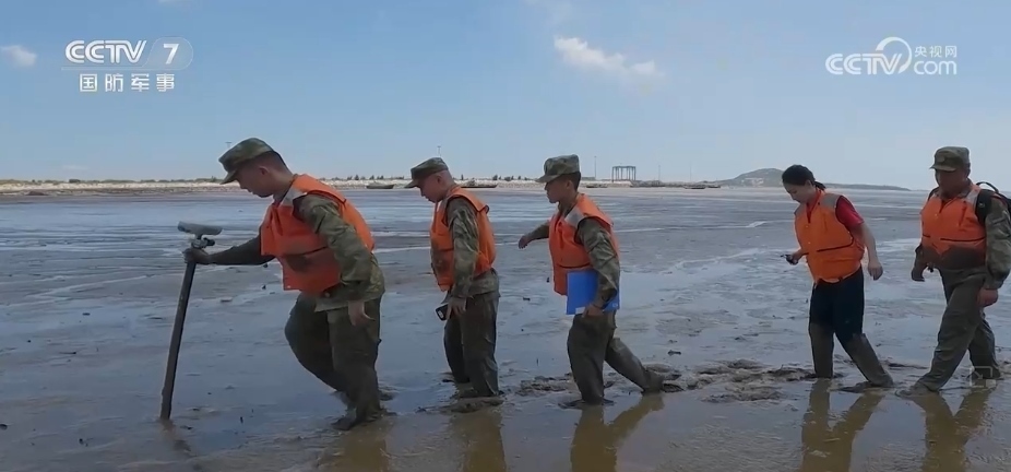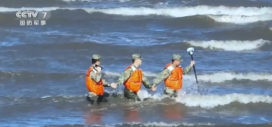 幸運(yùn)的是,記者跟隨采訪的這次任務(wù)沒(méi)有遭遇到大風(fēng)浪,經(jīng)過(guò)1個(gè)小時(shí)的平穩(wěn)航行后,海測(cè)小分隊(duì)順利抵達(dá)了坐標(biāo)方位。指揮員告訴記者,海測(cè)分為水深測(cè)量和地形測(cè)量,為了讓海圖上陸海結(jié)合部的拼接更加完美,海測(cè)兵們必須要背著沉重的測(cè)量裝備深入到小艇不能到達(dá)的岸線灘涂手動(dòng)測(cè)繪,測(cè)量點(diǎn)位附近大大小小的礁石,在海水的長(zhǎng)期浸泡下變得異常濕滑,泥濘的淺灘也隨時(shí)有塌陷的危險(xiǎn)。
