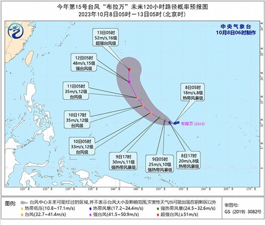 另外,今年第15號臺風“布拉萬”(Bolaven)于昨天(10月7日)下午生成,今天早晨5點鐘位于關(guān)島塞班東南方向約990公里的西北太平洋洋面上,就是北緯9.9度、東經(jīng)153.0度,中心附近最大風力有8級(18米/秒),中心最低氣壓為998百帕,七級風圈半徑150-200公里。