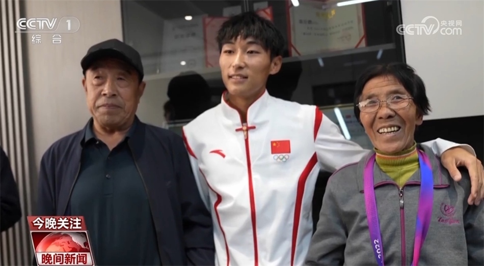 田徑比賽男子4×100米接力決賽中,第四棒陳佳鵬接棒時(shí),中國隊(duì)稍微落后。憑借強(qiáng)大的后程加速能力,陳佳鵬在最后30米逆轉(zhuǎn)對(duì)手率先撞線,中國隊(duì)收獲金牌。奪冠后陳佳鵬回到老家,先后把金牌掛在了媽媽和奶奶的脖子上,合影時(shí)奶奶笑得合不攏嘴。
