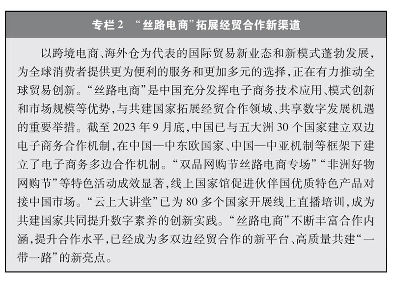 “數(shù)字絲綢之路”建設(shè)亮點(diǎn)紛呈。共建國(guó)家加強(qiáng)數(shù)字領(lǐng)域的規(guī)則標(biāo)準(zhǔn)聯(lián)通,推動(dòng)區(qū)域性數(shù)字政策協(xié)調(diào),攜手打造開(kāi)放、公平、公正、非歧視的數(shù)字發(fā)展環(huán)境。截至2022年底,中國(guó)已與17個(gè)國(guó)家簽署“數(shù)字絲綢之路”合作諒解備忘錄,與30個(gè)國(guó)家簽署電子商務(wù)合作諒解備忘錄,與18個(gè)國(guó)家和地區(qū)簽署《關(guān)于加強(qiáng)數(shù)字經(jīng)濟(jì)領(lǐng)域投資合作的諒解備忘錄》,提出并推動(dòng)達(dá)成《全球數(shù)據(jù)安全倡議》《“一帶一路”數(shù)字經(jīng)濟(jì)國(guó)際合作倡議》《中國(guó)-東盟關(guān)于建立數(shù)字經(jīng)濟(jì)合作伙伴關(guān)系的倡議》《中阿數(shù)據(jù)安全合作倡議》《“中國(guó)+中亞五國(guó)”數(shù)據(jù)安全合作倡議》《金磚國(guó)家數(shù)字經(jīng)濟(jì)伙伴關(guān)系框架》等合作倡議,牽頭制定《跨境電商標(biāo)準(zhǔn)框架》。積極推進(jìn)數(shù)字基礎(chǔ)設(shè)施互聯(lián)互通,加快建設(shè)數(shù)字交通走廊,多條國(guó)際海底光纜建設(shè)取得積極進(jìn)展,構(gòu)建起130套跨境陸纜系統(tǒng),廣泛建設(shè)5G基站、數(shù)據(jù)中心、云計(jì)算中心、智慧城市等,對(duì)傳統(tǒng)基礎(chǔ)設(shè)施如港口、鐵路、道路、能源、水利等進(jìn)行數(shù)字化升級(jí)改造,“中國(guó)-東盟信息港”、“數(shù)字化中歐班列”、中阿網(wǎng)上絲綢之路等重點(diǎn)項(xiàng)目全面推進(jìn),“數(shù)字絲路地球大數(shù)據(jù)平臺(tái)”實(shí)現(xiàn)多語(yǔ)言數(shù)據(jù)共享。空間信息走廊建設(shè)成效顯著,中國(guó)已建成連接南亞、非洲、歐洲和美洲的衛(wèi)星電信港,中巴(西)地球資源系列遙感衛(wèi)星數(shù)據(jù)廣泛應(yīng)用于多個(gè)國(guó)家和領(lǐng)域,北斗三號(hào)全球衛(wèi)星導(dǎo)航系統(tǒng)為中歐班列、船舶海運(yùn)等領(lǐng)域提供全面服務(wù);中國(guó)與多個(gè)共建國(guó)家和地區(qū)共同研制和發(fā)射通信或遙感衛(wèi)星、建設(shè)衛(wèi)星地面接收站等空間基礎(chǔ)設(shè)施,依托聯(lián)合國(guó)空間科技教育亞太區(qū)域中心(中國(guó))為共建國(guó)家培養(yǎng)大量航天人才,積極共建中海聯(lián)合月球和深空探測(cè)中心、中阿空間碎片聯(lián)合觀測(cè)中心、瀾湄對(duì)地觀測(cè)數(shù)據(jù)合作中心、中國(guó)東盟衛(wèi)星應(yīng)用信息中心、中非衛(wèi)星遙感應(yīng)用合作中心,利用高分衛(wèi)星16米數(shù)據(jù)共享服務(wù)平臺(tái)、“一帶一路”典型氣象災(zāi)害分析及預(yù)警平臺(tái)、自然資源衛(wèi)星遙感云服務(wù)平臺(tái)等服務(wù)于更多共建國(guó)家。