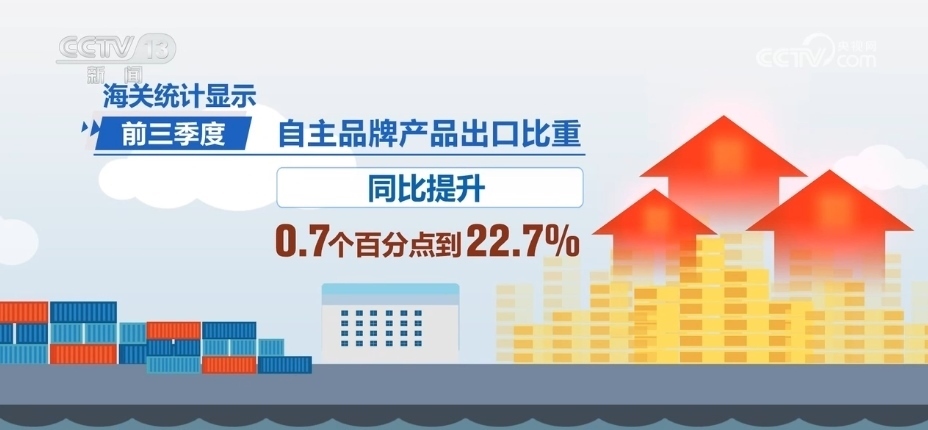 海關(guān)統(tǒng)計(jì)顯示,前三季度,我國(guó)民營(yíng)企業(yè)月度進(jìn)出口增速高于整體,自主品牌產(chǎn)品出口比重同比提升0.7個(gè)百分點(diǎn)到22.7%。