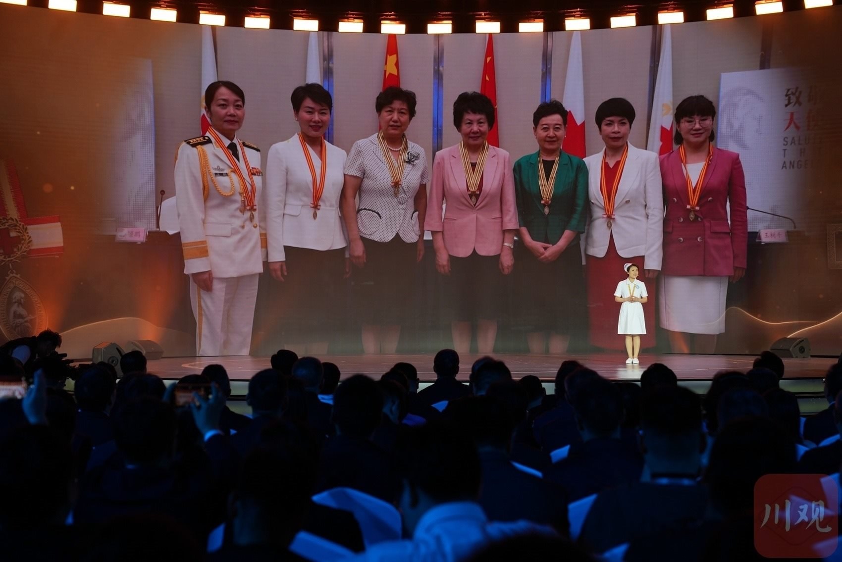 在 “錦水含章”篇章中,以歌曲《紅梅贊》引入,《江姐在川大》編劇冉詩媛、四川大學(xué)“江姐班”學(xué)生代表張鈺、“江姐紀(jì)念館”設(shè)計者段禹農(nóng)、第49屆南丁格爾獎獲得者蔣艷和四川大學(xué)三星堆遺址考古隊隊長黎海超等結(jié)合工作學(xué)習(xí)實踐,動情講述傳承江姐精神矢志報國、援外抗疫展現(xiàn)大愛、創(chuàng)新賦能文博考古故事,生動詮釋紅色傳承、文脈賡續(xù)、人民至上。