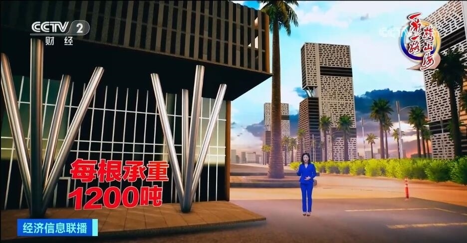 包括標志塔在內,中國企業(yè)在中央商務區(qū)共承接了20個高層建筑單體及配套市政工程。20棟高樓間,我們還能看見不少這樣的“樹形柱”,四根向上斜伸的柱子,像一個倒立的金字塔。我身邊就是這種樹形柱,每根柱子承受1200噸重量,相當于在上面站立150頭成年大象,受力卻只集中于底部一點,中國團隊歷經3個多月的精密計算與人工調試,讓這個專屬于埃及的設計成功澆筑,用堅實的技術托起了這座未來之城。