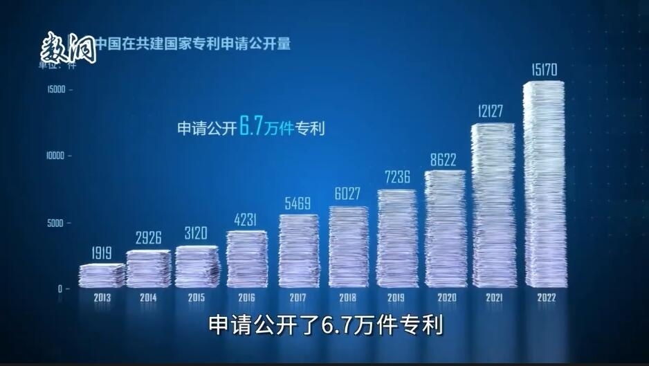 從2013年到2022年,中國(guó)在共建國(guó)家一共申請(qǐng)公開了6.7萬(wàn)件專利,年平均增長(zhǎng)率達(dá)到26%。其中,有八成以上的專利申請(qǐng)來(lái)自企業(yè)。十年間,申請(qǐng)專利的企業(yè)數(shù)量由430家增至2429家,增加了4.6倍。在基礎(chǔ)設(shè)施建設(shè)、能源、貿(mào)易、投資等領(lǐng)域合作中,中國(guó)企業(yè)將其所具有的技術(shù)優(yōu)勢(shì),轉(zhuǎn)化成了共建“一帶一路”的強(qiáng)大動(dòng)能。