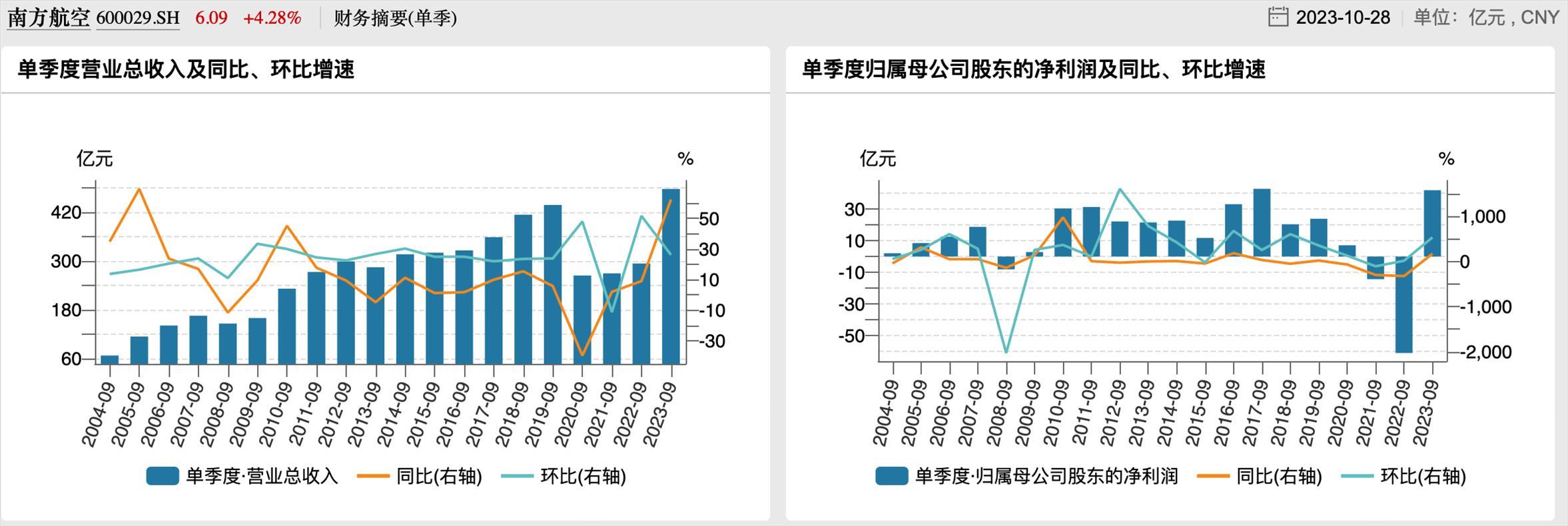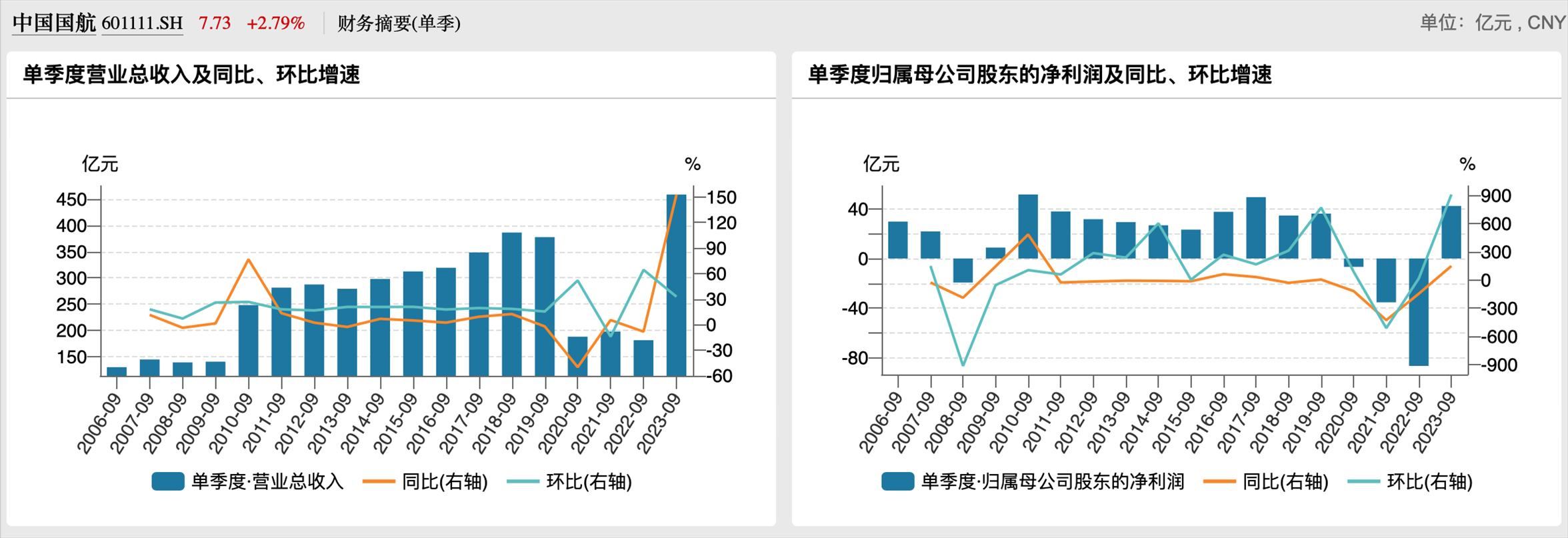 值得注意的是,上次單季度盈利的時間,國航和東航還是在2019年三季度,南航則在2020年三季度。