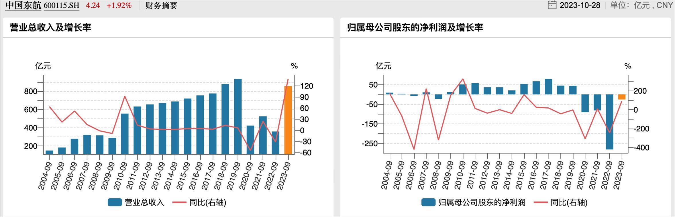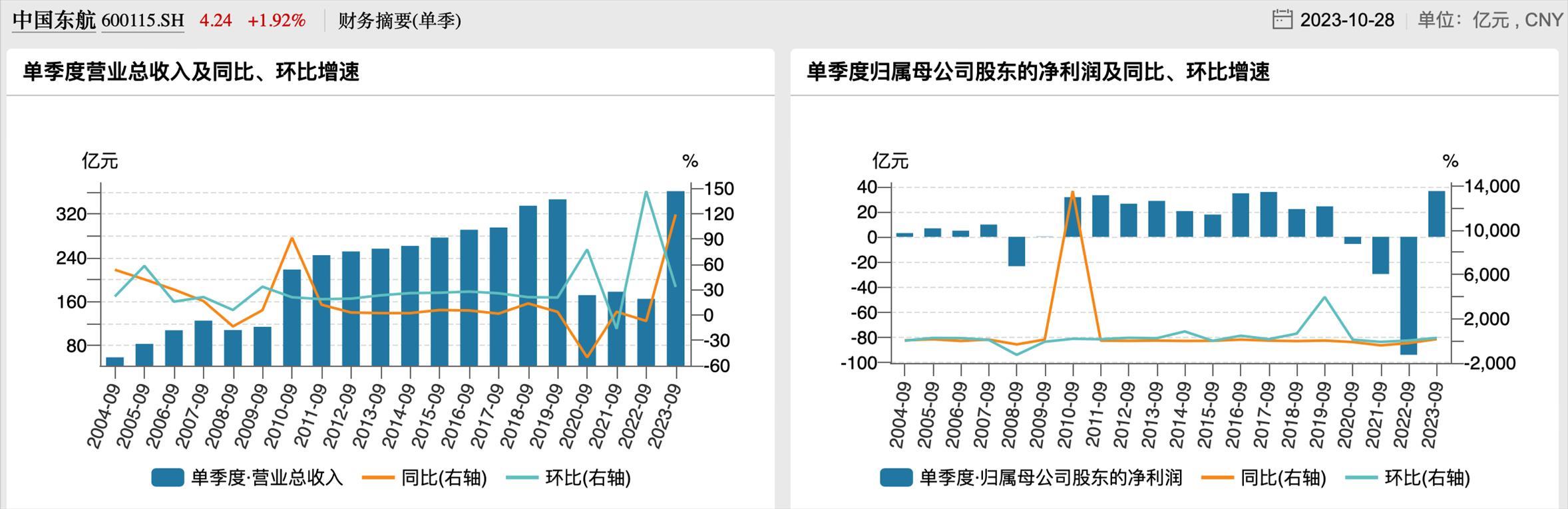 東航三季度營收、凈利創(chuàng)歷史同期新高。前三季度營收恢復(fù)至疫情前水平但仍低于2018、2019年,前三季度東航仍未扭虧,但同比已大幅減虧。