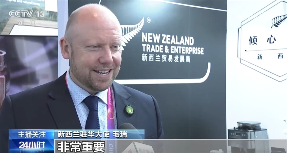 新西蘭駐華大使 毛瑞:這幾年參展的新西蘭公司體現(xiàn)一個強勁的趨勢,大多數(shù)參展企業(yè)活躍在食品和飲料等行業(yè),食品、飲料、健康成為一個趨勢,因為中國消費者越來越重視健康、重視新鮮、重視與自然環(huán)境的聯(lián)系。中國市場對是很多新西蘭企業(yè)來說非常重要,所以我希望幫助他們在這個巨大且重要的市場上取得成功。