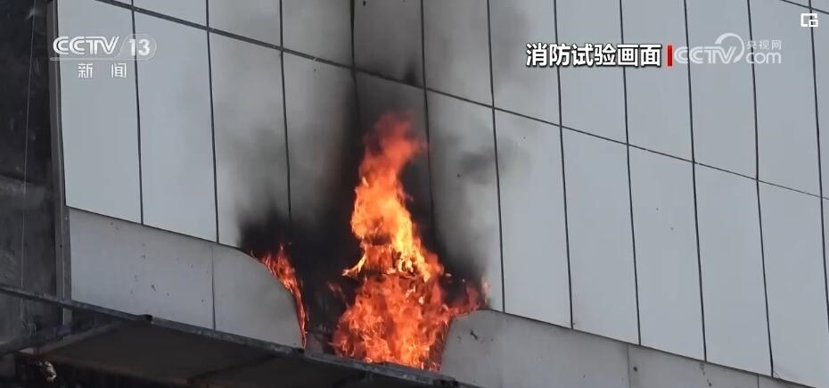 在鄭州消防救援支隊的培訓基地,一棟33米高的訓練樓的外墻鋪設了常見的高層建筑外裝飾保溫材料。表面是鋁塑板,里面的灰色保溫層就是聚氨酯泡沫。外墻裝飾保溫材料從離地10米的高度開始鋪設,形成一整面高15米,寬10米的鋁塑板外立面。
