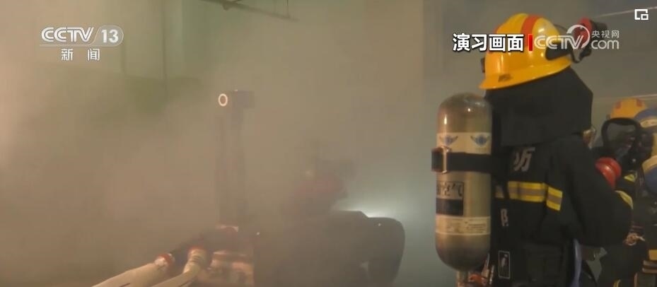 演習過程中,舉高噴射消防車從外部進行滅火作業(yè)的同時,多支消防救援小隊進入商場內(nèi)部,在濃煙中實戰(zhàn)模擬火場搜救和滅火作戰(zhàn)。在救援人員的遙控指揮下,消防救援機器狗首先突入火場,利用身上加裝的煙氣成分分析儀、攝像頭等多種設備,實時監(jiān)測環(huán)境危險狀況,并對火場環(huán)境進行偵察。在大火猛烈燃燒、建筑物結構不穩(wěn)定情況下,消防救援人員遠程控制無人滅火機器人首先進入火場,進行前期滅火作業(yè)。為保障內(nèi)攻救援人員安全,消防員綜合定位系統(tǒng)也投入使用。每名消防員都攜帶平板終端和定位信標,指揮員可以實時掌握進入火場人員的生命體征、實時位置。一旦救援人員遇險,系統(tǒng)能夠第一時間引導緊急救援小組展開營救行動。