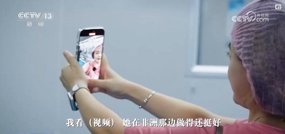 記者:現(xiàn)在方方(方菁)在給她的非洲客戶打視頻電話,來(lái)給她更直觀地看,這個(gè)紙尿褲在中國(guó)的工廠是怎么生產(chǎn)出來(lái)的。