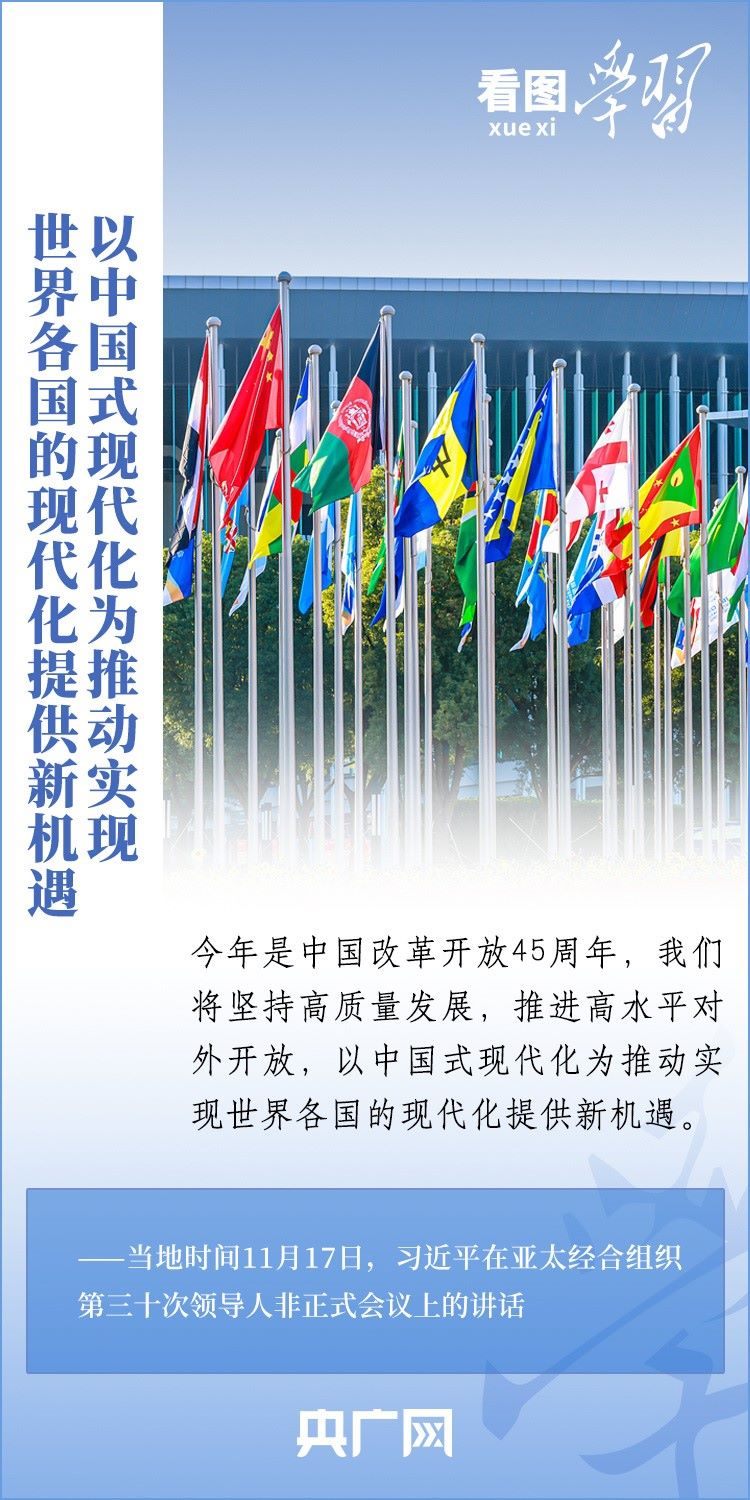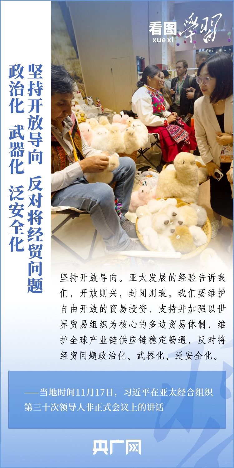 當(dāng)?shù)貢r(shí)間11月17日上午,亞太經(jīng)合組織第三十次領(lǐng)導(dǎo)人非正式會(huì)議在美國(guó)舊金山舉行。國(guó)家主席習(xí)近平出席會(huì)議并發(fā)表題為《堅(jiān)守初心 團(tuán)結(jié)合作 攜手共促亞太高質(zhì)量增長(zhǎng)》的重要講話(huà)。習(xí)主席在講話(huà)中全面闡述了中國(guó)對(duì)深化亞太合作、促進(jìn)地區(qū)和世界經(jīng)濟(jì)增長(zhǎng)的重要主張,以“四個(gè)堅(jiān)持”提出多項(xiàng)務(wù)實(shí)舉措,希望同各方一道努力,共同打造亞太下一個(gè)“黃金三十年”。一起來(lái)學(xué)習(xí)!
