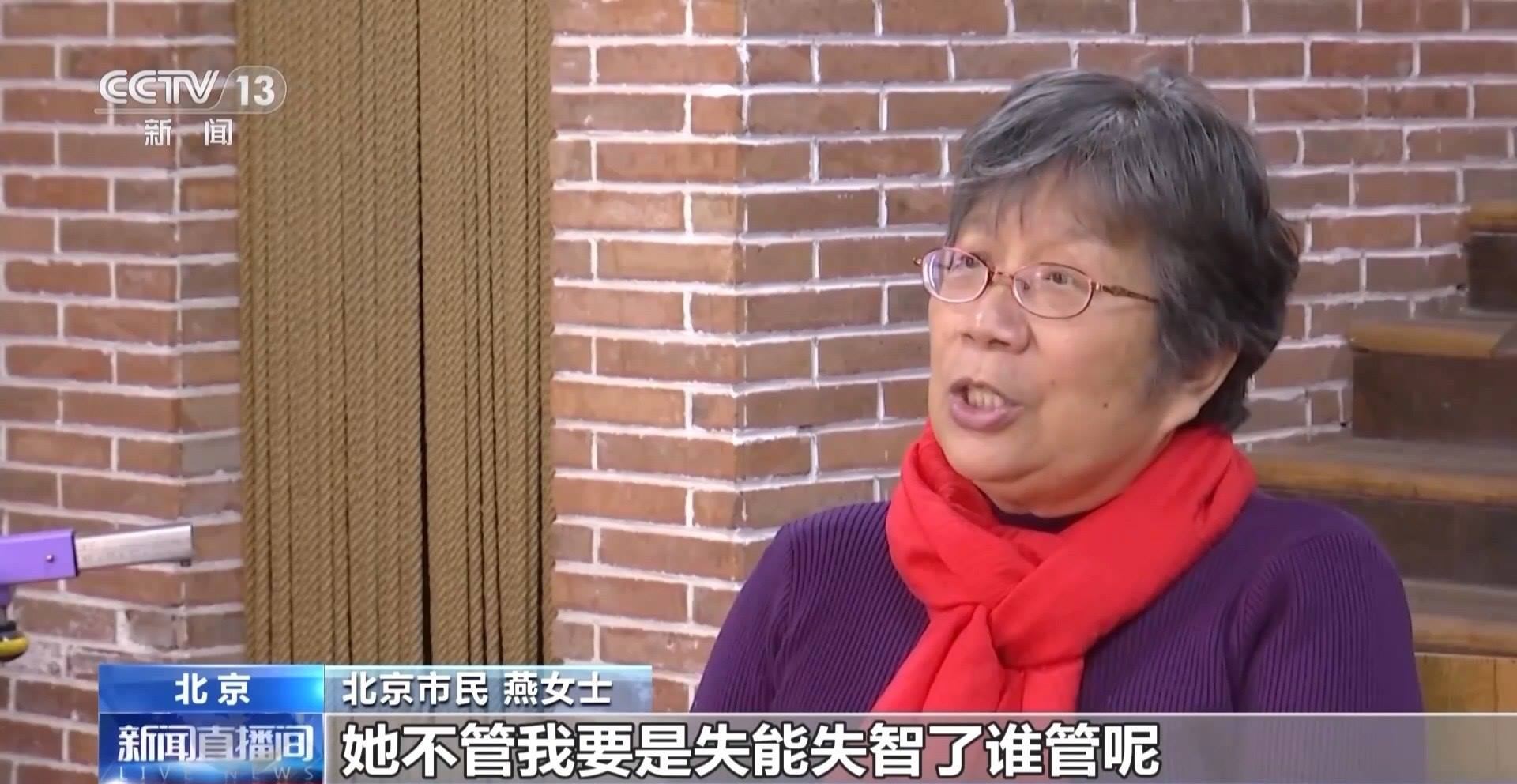 北京市民 燕女士:只是這么一說,她是同意的,但是具體的就沒談,因?yàn)槿思乙彩巧习嗟?,工作也比較忙,一切事都是由她管,她不管,我要是失能失智了,誰管呢?我也沒地兒找去,我認(rèn)識(shí)的人范圍比較小,所以只有這樣。