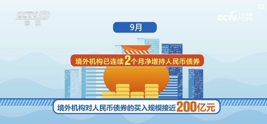 日前,中國(guó)人民銀行上??偛堪l(fā)布境外機(jī)構(gòu)投資銀行間債券市場(chǎng)相關(guān)情況。數(shù)據(jù)顯示,境外機(jī)構(gòu)已連續(xù)2個(gè)月凈增持人民幣債券。10月,境外機(jī)構(gòu)買(mǎi)入規(guī)模超400億元,創(chuàng)下過(guò)去4個(gè)月以來(lái)新高;9月,境外機(jī)構(gòu)買(mǎi)入規(guī)模接近200億元。