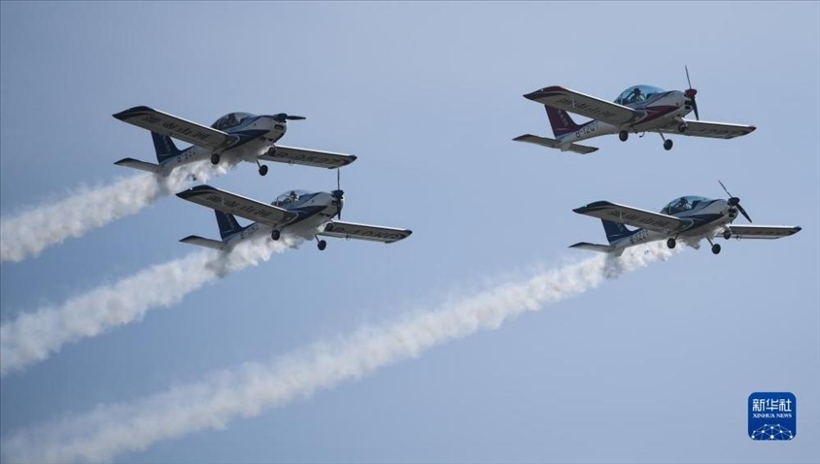 11月23日,山河飛行表演隊(duì)在2023亞洲通用航空展開幕式上進(jìn)行飛行表演。
