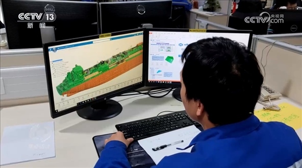 精益求精是確保產(chǎn)品質(zhì)量的生命線,科技創(chuàng)新則是推動(dòng)產(chǎn)業(yè)進(jìn)步的動(dòng)力源。2016年,江南造船成立了江南研究院,利用數(shù)字技術(shù)來(lái)提高設(shè)計(jì)和生產(chǎn)中的效率。比如這套VR系統(tǒng)就可以模擬船艙內(nèi)的真實(shí)情況,讓設(shè)計(jì)師、建造團(tuán)隊(duì)和船東公司可以據(jù)此共同討論設(shè)計(jì)是否合理,這極大地降低了成本、提高了效率。
