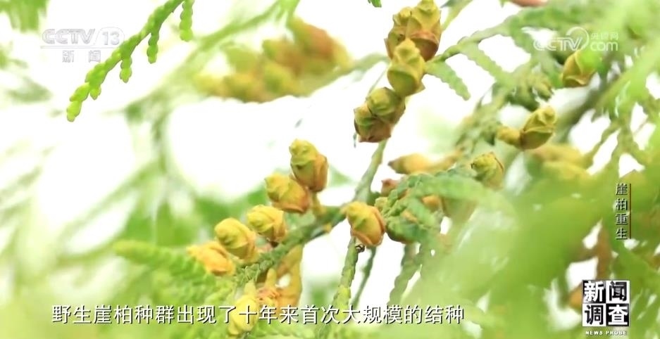 中國林科院森林生態(tài)環(huán)保所二級研究員 郭泉水:自從2012年崖柏群體結實以來,間隔十年,發(fā)現(xiàn)的規(guī)模比較大的一次崖柏結實,應該對于我們雪寶山來說是一件大事。把我們能采到的一些種子收集起來,然后在育苗的溫室,大棚里面育出小苗,再把小苗回歸到崖柏群落里面。