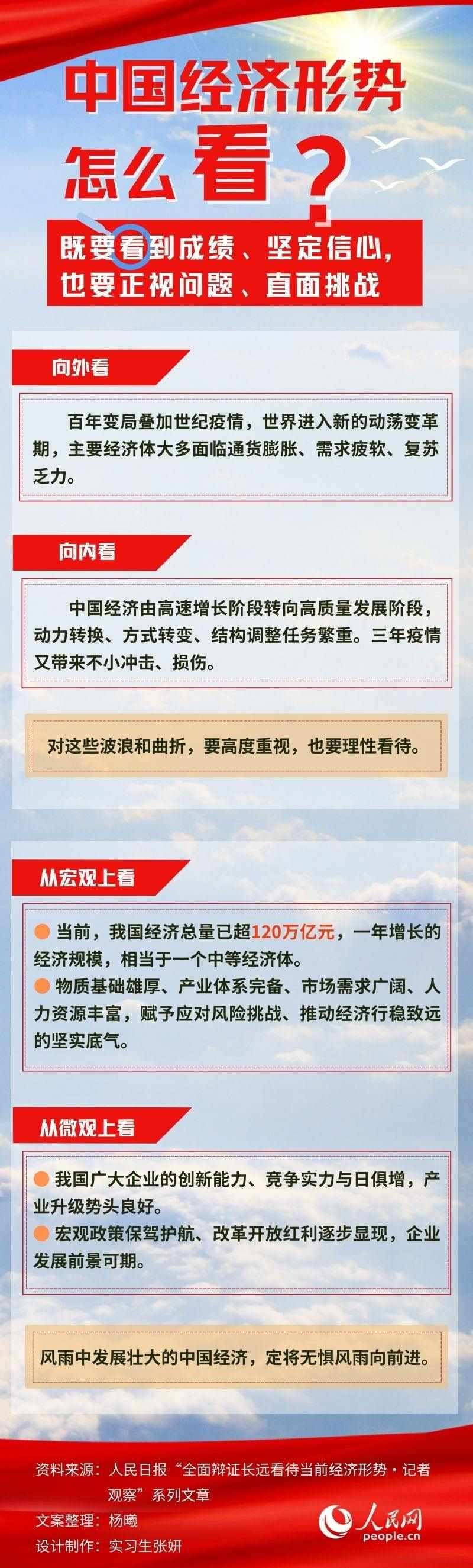 今年以來,我國經(jīng)濟總體回升向好,高質(zhì)量發(fā)展扎實推進。讀懂中國經(jīng)濟,要看到成績、堅定信心,也要正視問題、直面挑戰(zhàn)。只有全面辯證長遠看待,才能準確把握經(jīng)濟發(fā)展中的積極因素,形成推動高質(zhì)量發(fā)展的強大動力。身處百年未有之大變局,把握優(yōu)勢、堅定前行信心,定能推動我國經(jīng)濟乘風破浪向前、邁上更高臺階。