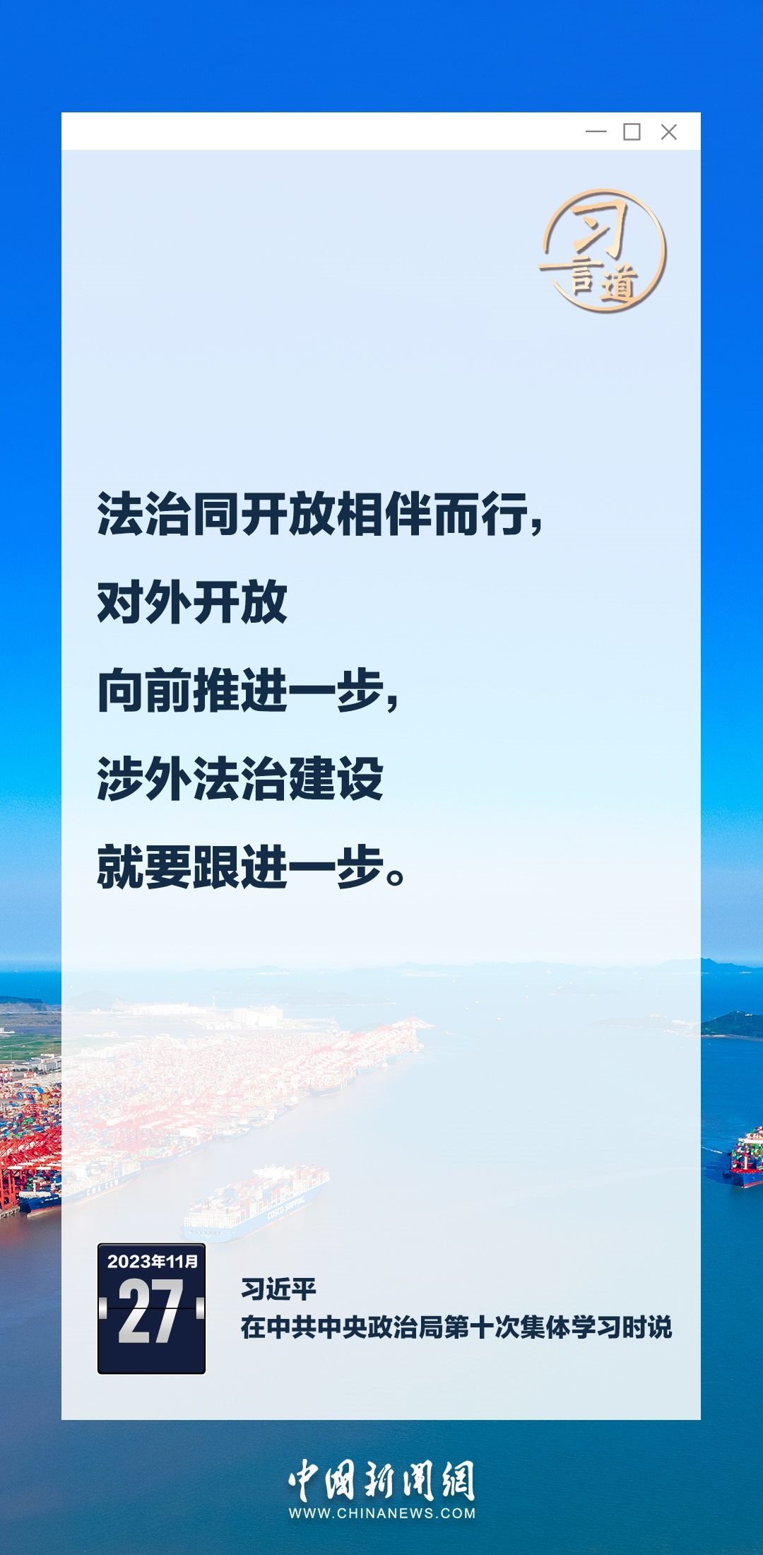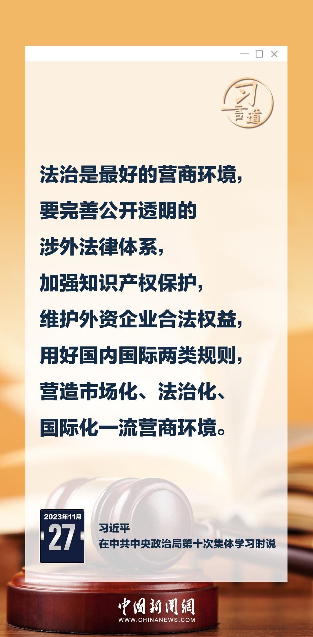 中共中央政治局11月27日下午就加強(qiáng)涉外法制建設(shè)進(jìn)行第十次集體學(xué)習(xí)。中共中央總書記習(xí)近平在主持學(xué)習(xí)時(shí)強(qiáng)調(diào)——