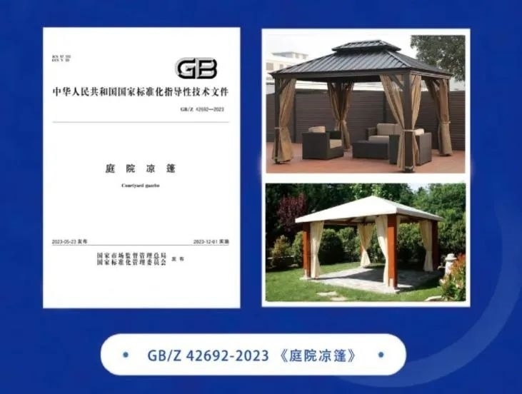 《庭院涼篷》國(guó)家標(biāo)準(zhǔn)化指導(dǎo)性技術(shù)文件自2023年12月1日起實(shí)施,該文件的制定和出臺(tái)將填補(bǔ)該類產(chǎn)品缺乏標(biāo)準(zhǔn)規(guī)范的空白,有利于庭院涼篷產(chǎn)品質(zhì)量的提升以及行業(yè)的發(fā)展,為企業(yè)出口提供保障。文件首次對(duì)庭院涼篷從產(chǎn)品分類、原材料、外觀、產(chǎn)品完整性、尺寸、性能要求和安全要求等方面進(jìn)行詳細(xì)規(guī)范。