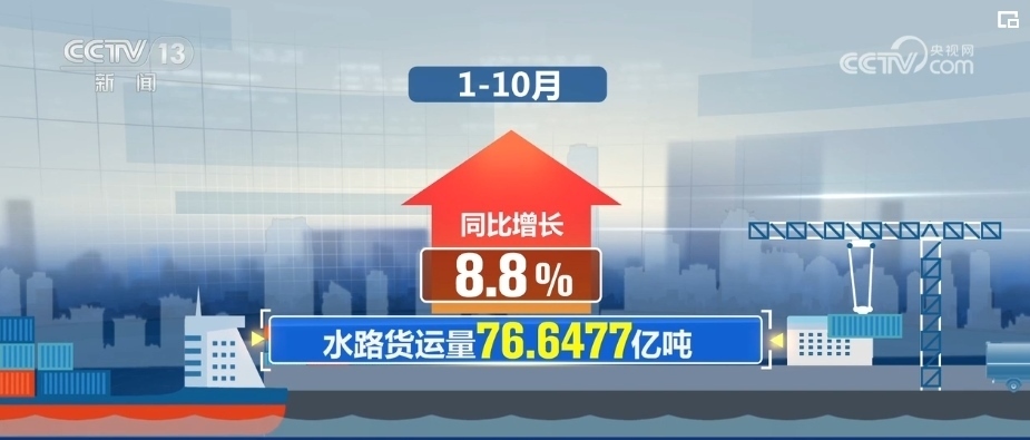 貨運(yùn)方面,1—10月,我國(guó)公路貨運(yùn)量332.9567億噸,同比增長(zhǎng)8.2%;水路貨運(yùn)量達(dá)76.6477億噸,同比增長(zhǎng)8.8%。