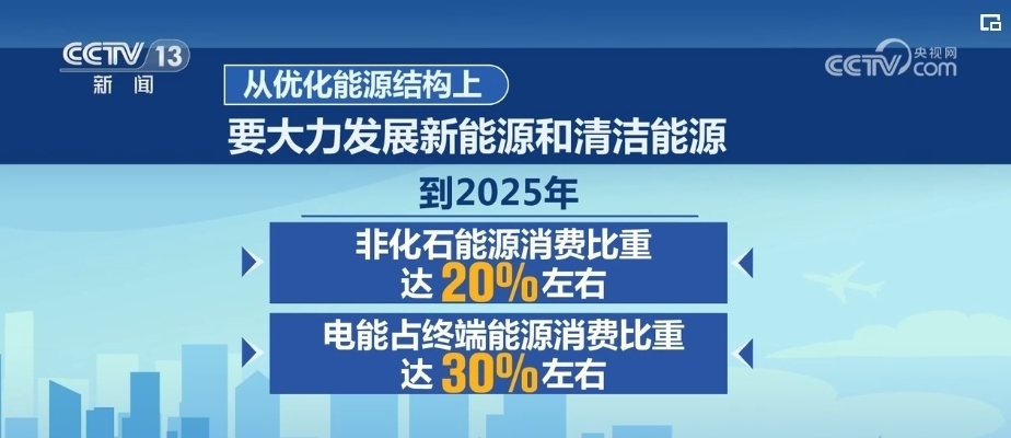 從優(yōu)化能源結構上,要大力發(fā)展新能源和清潔能源。到2025年,非化石能源消費比重達20%左右,電能占終端能源消費比重達30%左右。持續(xù)增加天然氣生產(chǎn)供應,新增天然氣優(yōu)先保障居民生活和清潔取暖需求。