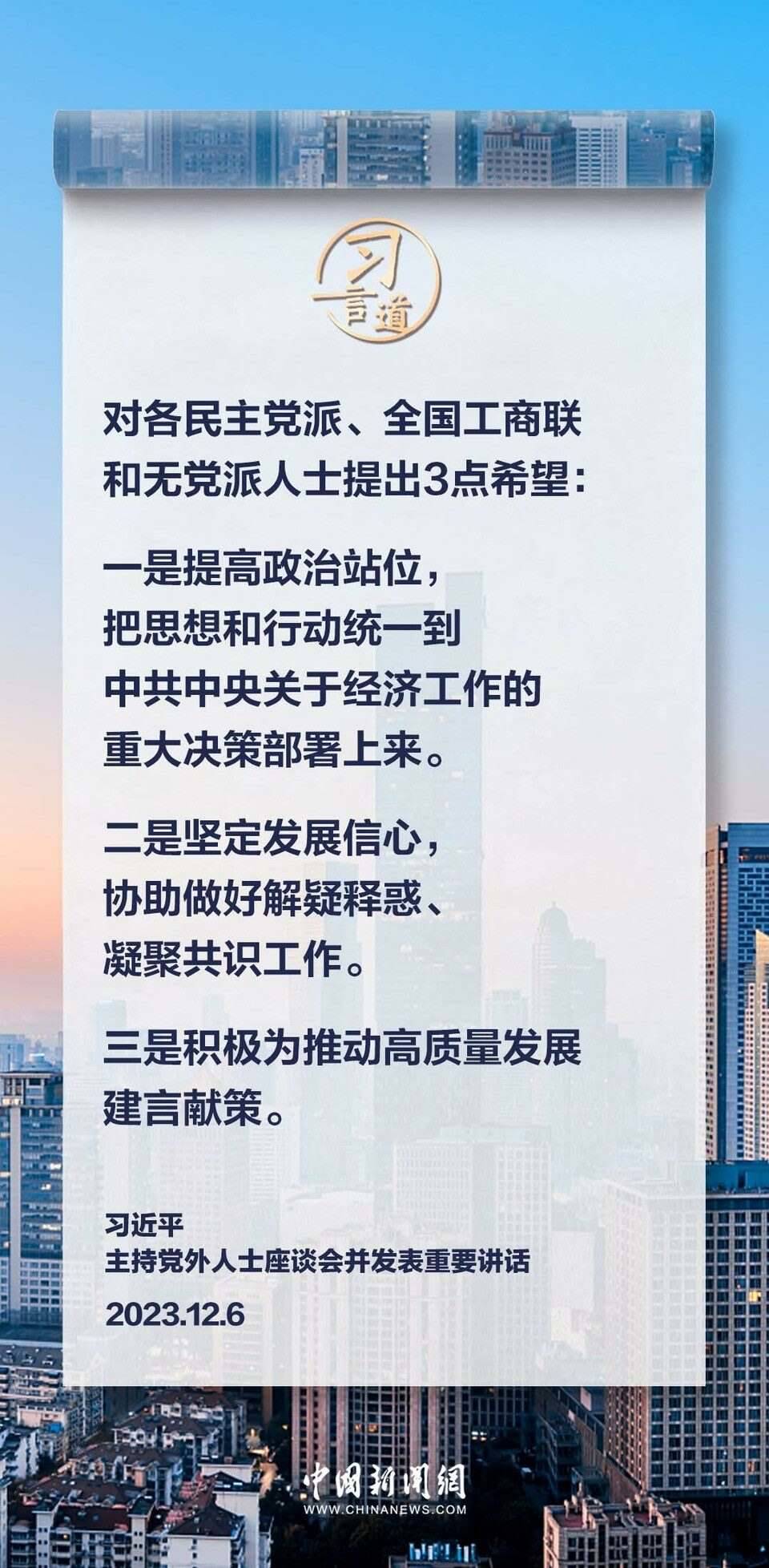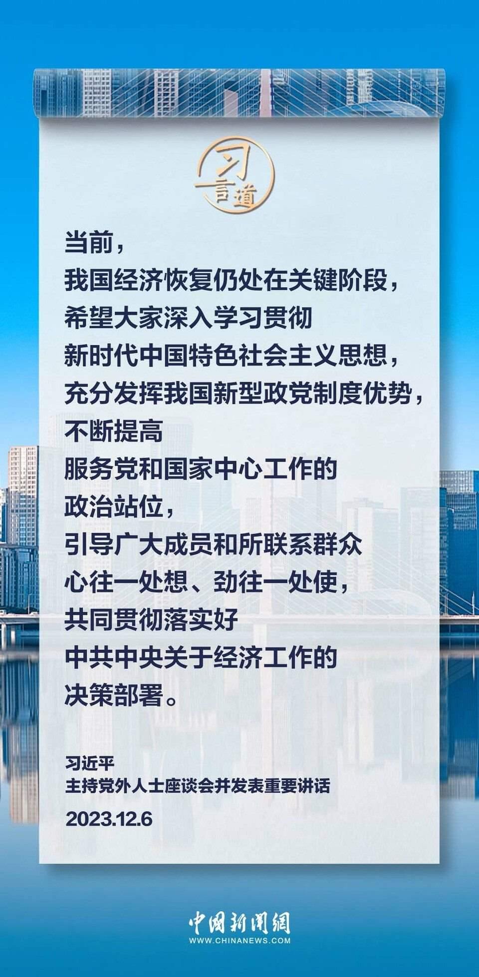 12月6日,中共中央在中南海召開黨外人士座談會,就今年經(jīng)濟形勢和明年經(jīng)濟工作聽取各民主黨派中央、全國工商聯(lián)負責(zé)人和無黨派人士代表的意見和建議。中共中央總書記習(xí)近平主持座談會并發(fā)表重要講話。