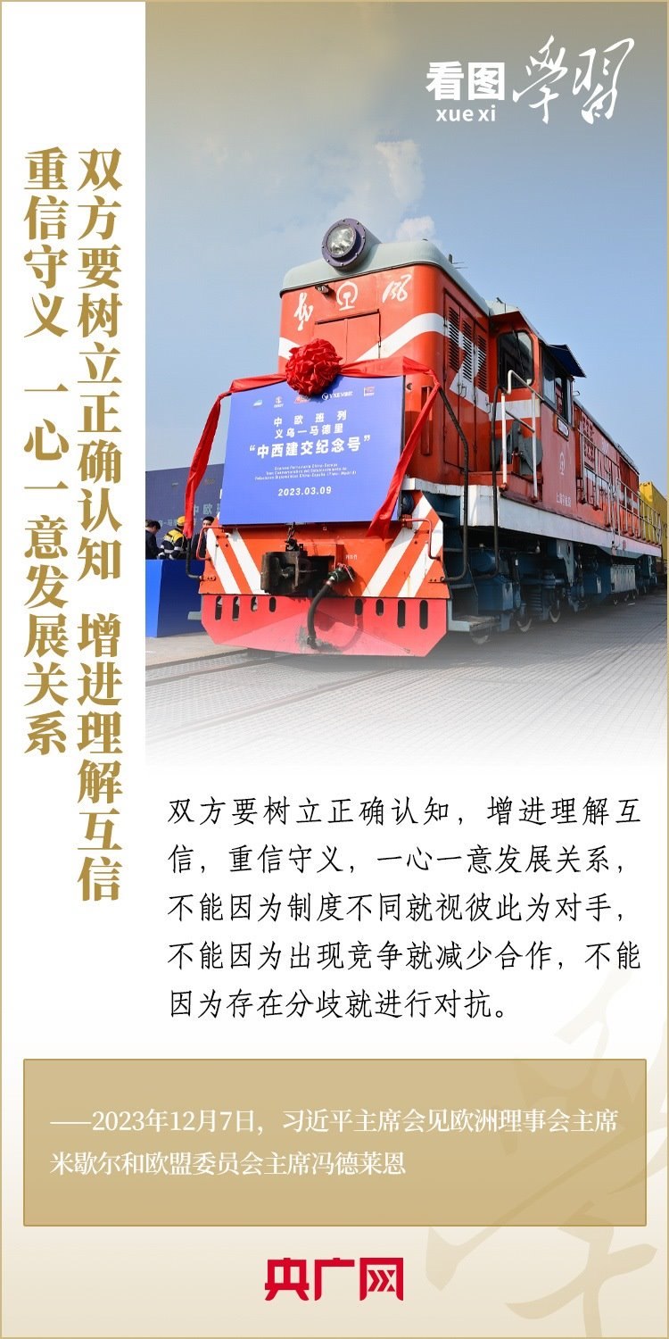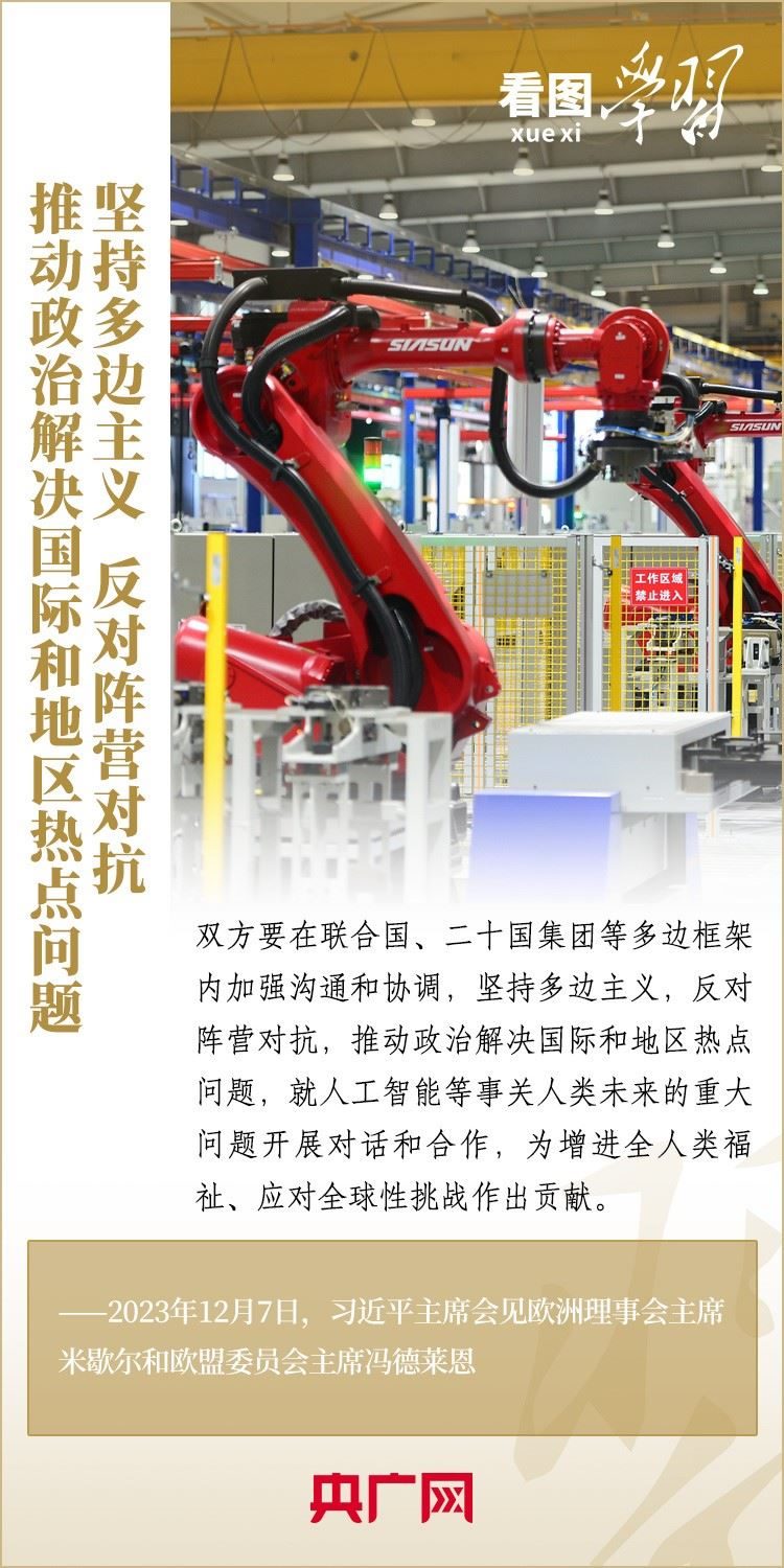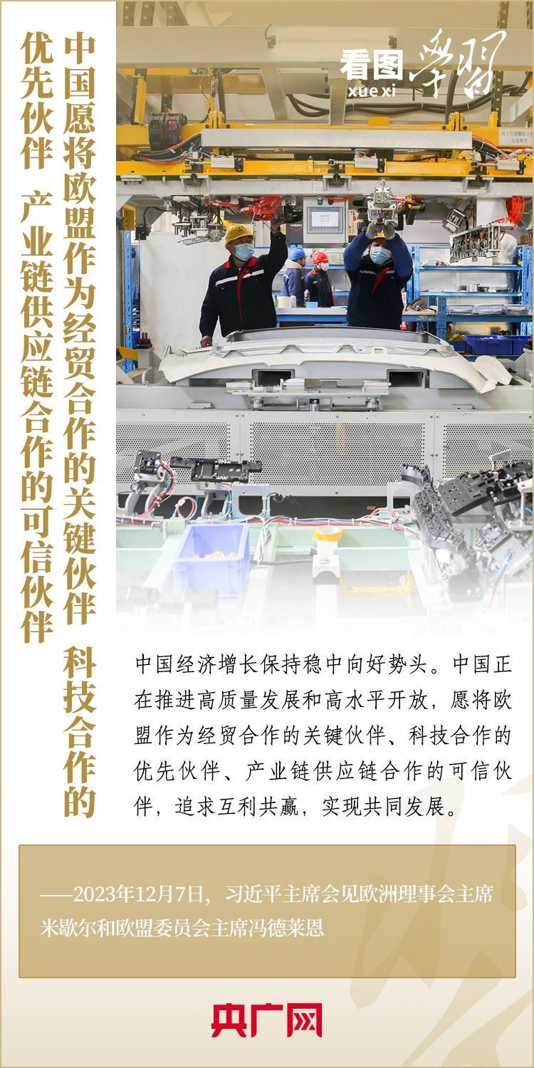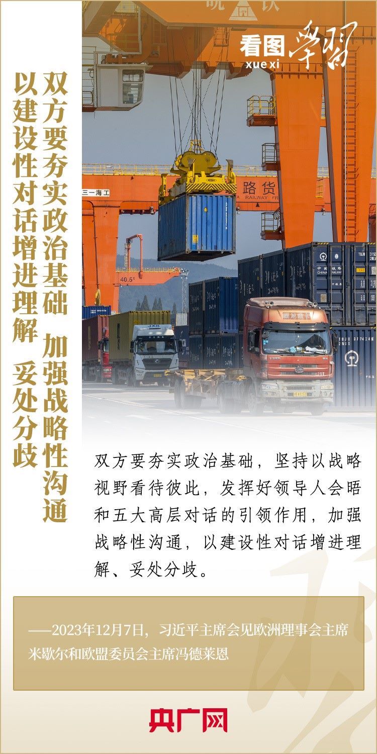 12月7日,國家主席習近平會見來華舉行第二十四次中國—歐盟領導人會晤的歐洲理事會主席米歇爾和歐盟委員會主席馮德萊恩,雙方就事關中歐關系的戰(zhàn)略性問題,以及中歐各領域對話合作、雙方重點關切、全球治理、國際和地區(qū)熱點問題等深入坦誠交換看法,并就一系列問題達成重要共識。今年是中歐建立全面戰(zhàn)略伙伴關系20周年,習主席強調,中歐關系具有戰(zhàn)略意義和世界影響,關乎世界和平、穩(wěn)定、繁榮。一起來學習!