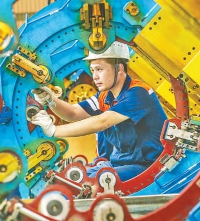 安徽馬鞍山經(jīng)開區(qū),工人在裝配冶金智能裝備產(chǎn)品。