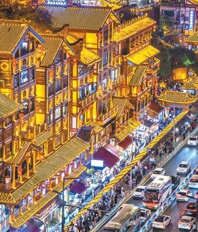 重慶洪崖洞景區(qū),眾多游客前來游玩。