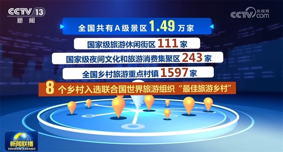 豐富優(yōu)質(zhì)旅游產(chǎn)品供給。目前全國共有A級(jí)景區(qū)1.49萬家,國家級(jí)旅游休閑街區(qū)111家,國家級(jí)夜間文化和旅游消費(fèi)集聚區(qū)243家,全國鄉(xiāng)村旅游重點(diǎn)村鎮(zhèn)1597家,8個(gè)鄉(xiāng)村入選聯(lián)合國世界旅游組織“最佳旅游鄉(xiāng)村”,成為文化和旅游賦能鄉(xiāng)村振興典型案例。